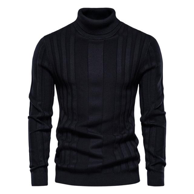 ゴルフウエア メンズ ニットセーター セーター タートルネック トップス インナー 長袖 無地 秋冬 シンプル ビジネス 着痩せ