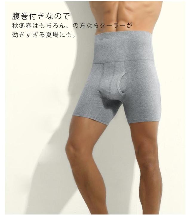 腹巻付きパンツ メンズ ハイウエスト 前開き 吸湿性 伸縮性 ボクサーパンツ 防寒 冷え防止 防風 下着 インナー 通気性 ストレッチ スーツ 紳士用 送料無料