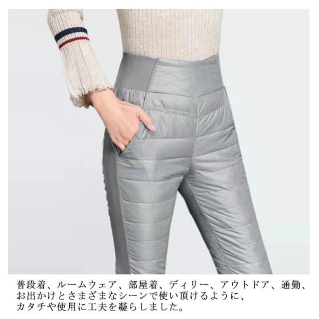 | 抜群にあたたかい!ダウン風パンツなのにすっきり見え! 軽くて暖かい!軽い中綿素材を入り、防寒対策バッチリ。 撥水透湿性、防風性のある素材で作られており、表地は汚れをはじくので、暖かく、お手入れが簡単です。 ウエストまで包んでくれるのでしっかり防寒できます。 すっきり見えるシルエットなのでどんなトップスと相性抜群。 普段着、ルームウェア、部屋着、ディリー、アウトドア、通勤、お出かけとさまざまなシーンで使い頂けるように、カタチや使用に工夫を凝らしました。 | |