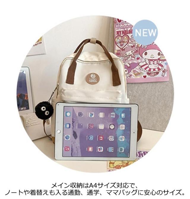 | リュックと手持ちの2way!デイリー使いにぴったりキャンバスリュック。 リュックトとしても、手持ちスタイルでも使える2wayバッグ。用途に合わせて使い分けられるのが嬉しい♪ メインルームはテキストやノートがジャストに収まるA4対応サイズ。程よくマチを設けた設計で、ランチボックスもすっぽりと収納可能。 フロントには定期や鍵など使用頻度の高い小物を入れるのに便利なファスナーポケット付き。 サイドにもオープンポケットを配置し、スリムなウォーターボトルやミニ折りたたみ傘を収納するのにちょうどいい♪ 大人にもピッタリのすっきりシルエットで毎日の通勤、マザーズバッグ、休日、レジャー、旅行など幅広く活躍するアイテム。 | |