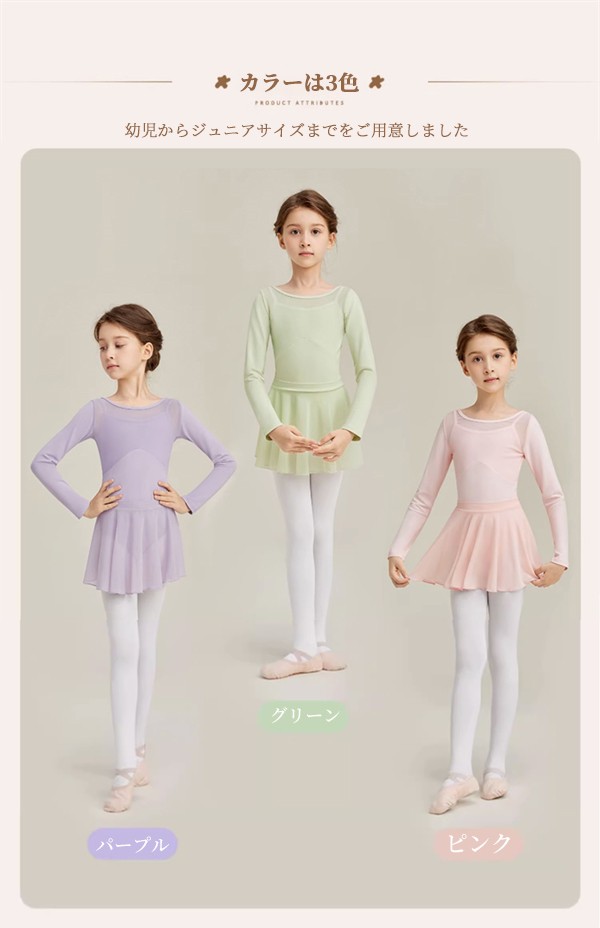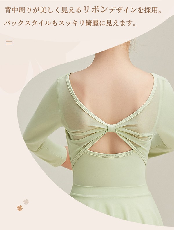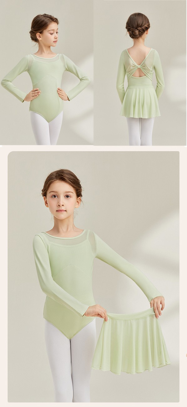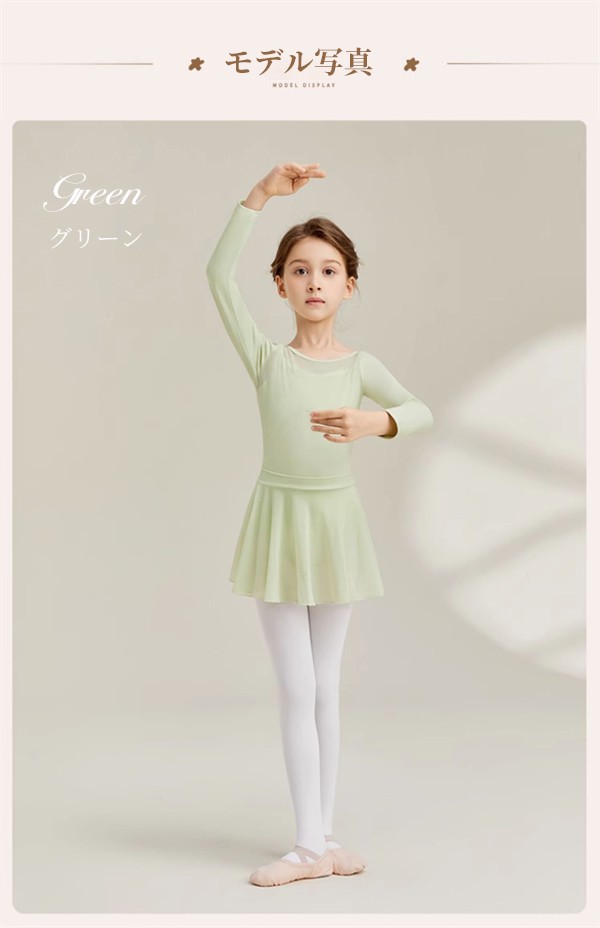 送料無料 レオタードスカートセット バレエ レオタード スカート付き バレエレオタード 長袖 女の子 子供 子供用 子供サイズ キッズ ジュニア ダンス 体操 バレエ用品 新体操 シンプル 練習服 レッスン着 ステージ衣装 発表会 バレリーナ 可愛い 練習 レッスン グリーン