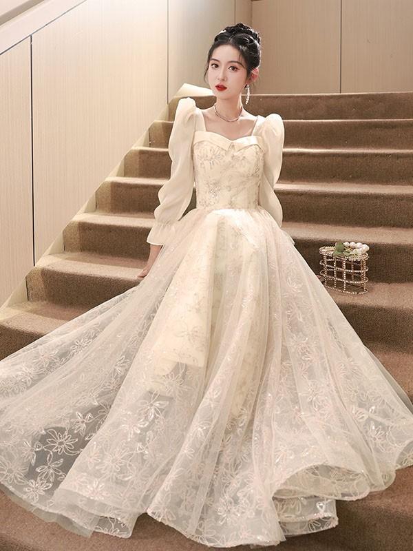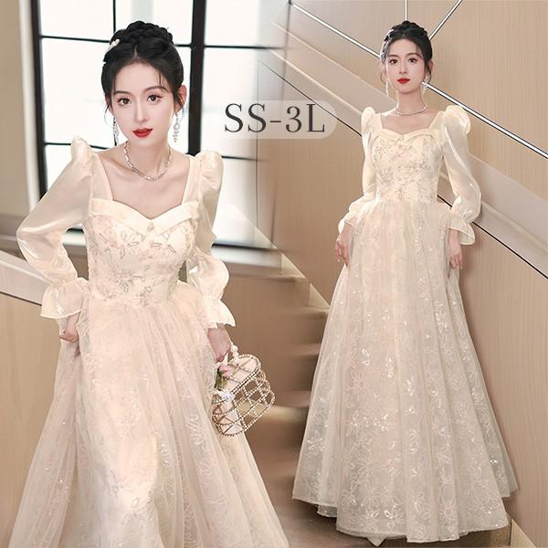 【商品名】ドレス 大人 ピアノ 発表会 ロング丈 ぽっちゃり 大きいサイズ イブニングドレス 演奏会 ピアノ発表会 袖付き ワンピース Aライン ステージドレス 二次会 女子会 成人式 パーティードレス 大人可愛い bg055zezejc