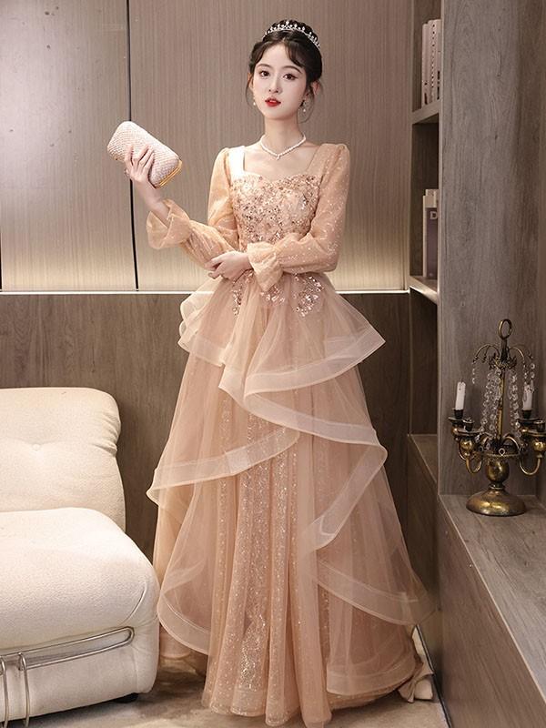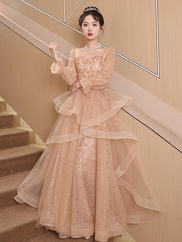 【商品名】ドレス 大人 ピアノ 発表会 ロング丈 ぽっちゃり 大きいサイズ イブニングドレス 演奏会 ピアノ発表会 袖付き ワンピース Aライン ステージドレス 二次会 女子会 成人式 パーティードレス 大人可愛い bg056zezejc