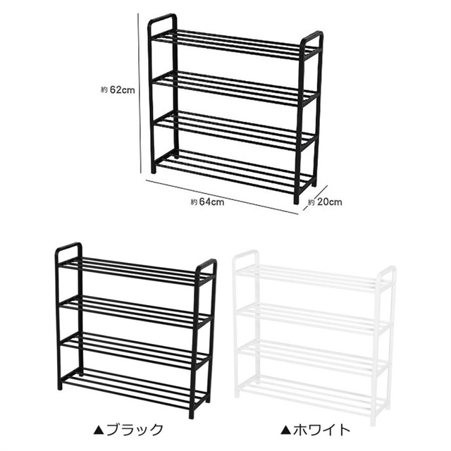 送料無料 シューズラック 4段 収納 ラック フレームラック 靴収納 下駄箱 シューズボックス 靴入れ 一人暮らし 玄関収納 おしゃれ 収納家具 通気性 宅H