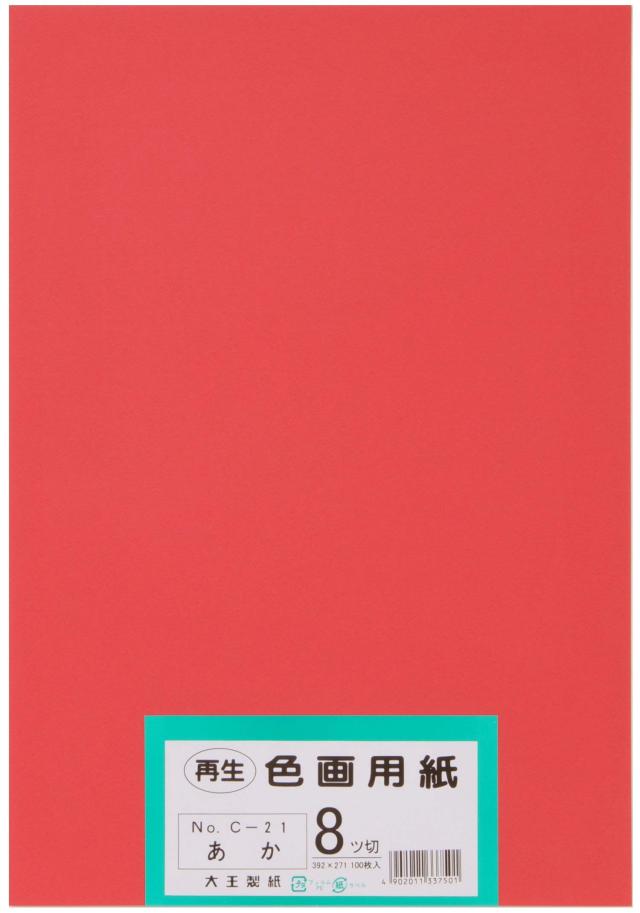 大王製紙 画用紙 再生 色画用紙 八ツ切サイズ 100枚入 あか(赤)