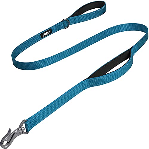 Fida リード 犬用 ロングリード 持ち手2個 柔らかいパッド付き 小型犬 中型犬 大型犬 ペット用 訓練リード 夜間反射 (1.5m, ブルー)
