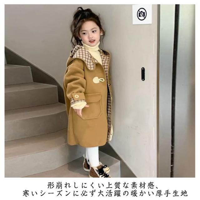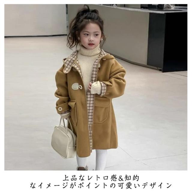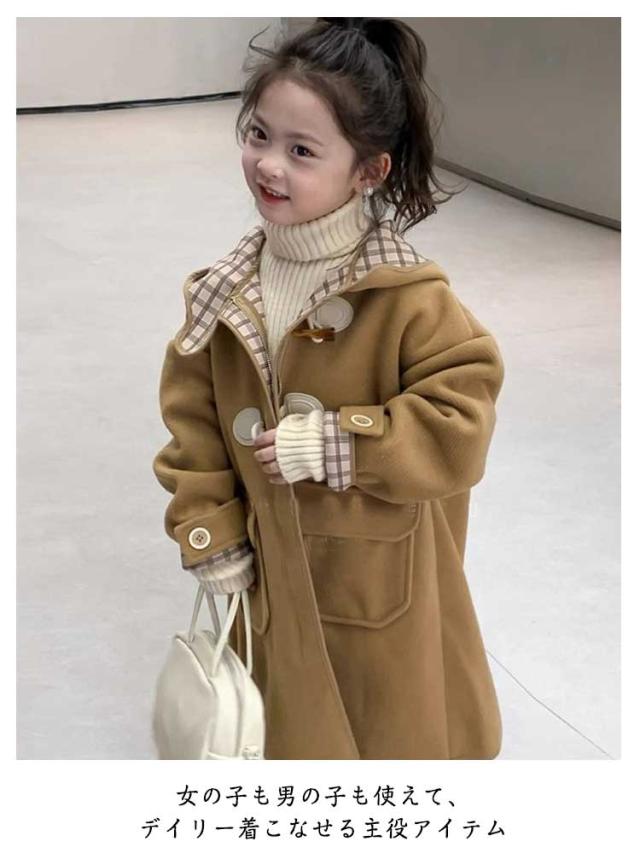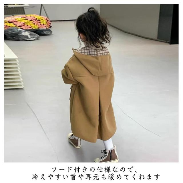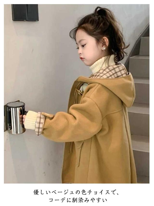 | 90~140cm!冬ファッションの定番アウター、子供用ダッフルコート 形崩れしにくい上質な素材感、寒いシーズンに必ず大活躍の暖かい厚手生地 フード付きの仕様なので、冷えやすい首や耳元も暖めてくれます 上品なレトロ感&知的なイメージがポイントの可愛いデザイン ファッション性と実用性兼ね備え、大きいポケットが付いてるのも嬉しい 優しいベージュの色チョイスで、コーデに馴染みやすい 女の子も男の子も使えて、デイリー着こなせる主役アイテム | |