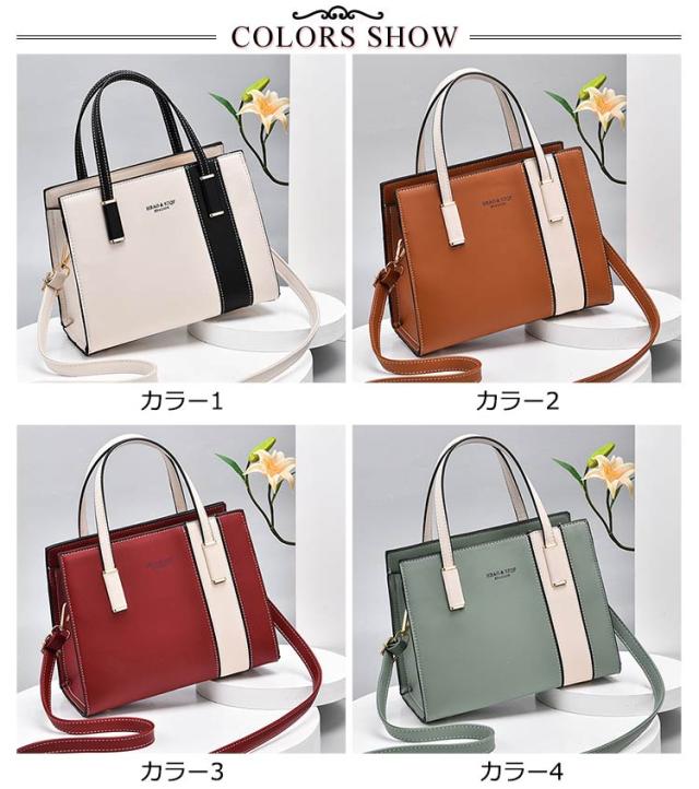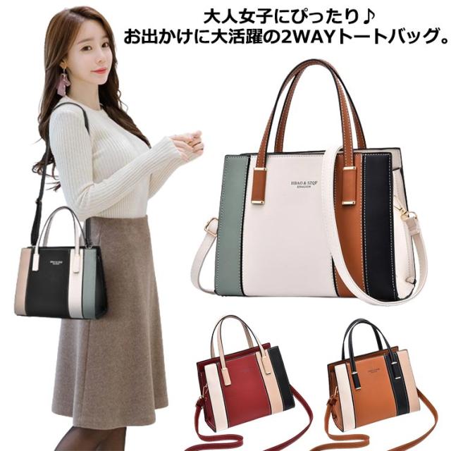 2トーンカラー レディース ハンドバッグ 肩掛け ハンドバッグ フェイクレザー ショルダーバッグ 耐久性 PUレザー 2WAY ショルダー 小さめ お手入れ簡単 通勤バッグ 手提げ鞄 通勤 オフィス 上品 大人かわいい