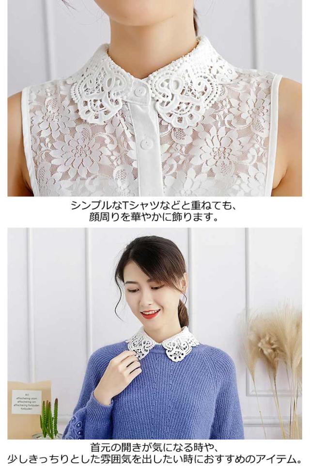 重ね着風 付け襟 フリル襟 角襟 アクセサリー シャツ襟 総レース つけえり レディース 小物 送料無料 トップス ブラウスつけ襟 無地 重ね着 レイヤード かわいい おしゃれ