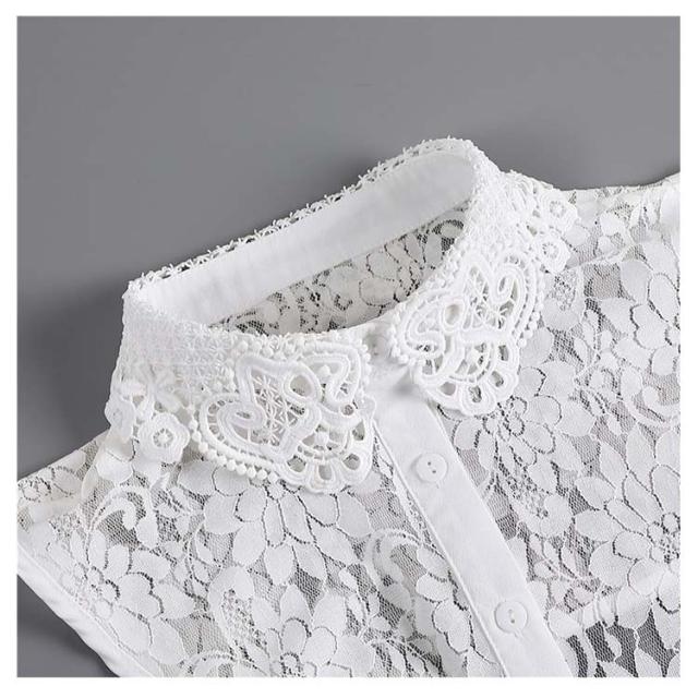 | 首回りを華やかに演出するレース付け襟。 女らしさを高める総レースデザイン。ほんのり素肌が透けるシースルー仕立てで、上品フェミニンな印象に。 お手持ちのトップスの下に忍ばせるだけで、カンタンにレイヤードスタイルを楽しめちゃう! きちんと感を演出するフロントボタン仕様。な前開きシャツ仕立てで着脱もスムーズ◎ 下部の両サイドに、サイズ調節可能なストラップ紐付き。ボディラインを締め付けず、心地よくフィットしてズレを防止。 普段から通勤通学まで使える角襟。アクセサリー感覚でいつものコーディネイトの印象がガラリと変わる! | |
