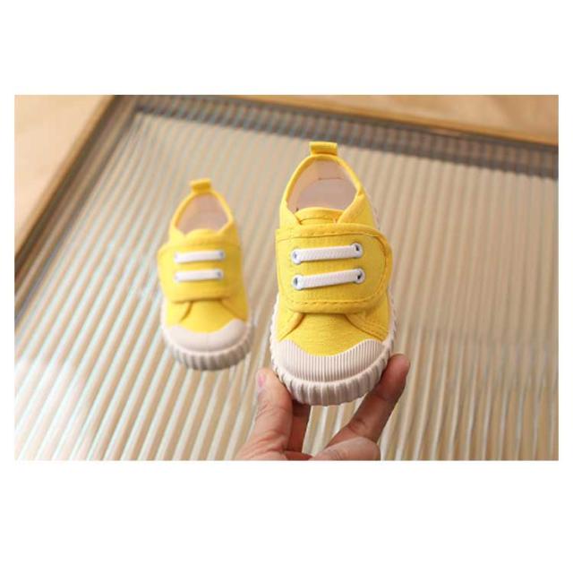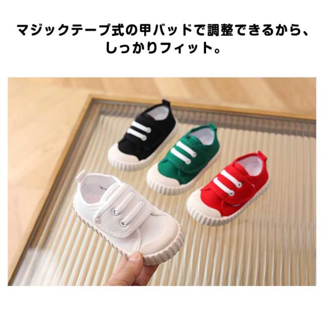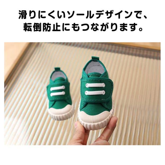 | キャンバス地がかわいい♪ おしゃれなキッズ、ベビー用スニーカーです。 マジックテープ式の甲バッドで調整できるから、しっかりフィット。 つま先部分には高強度ゴムが施してあり、足の指のケガからしっかりと保護します。 通気性のよいキャンバス素材で、蒸れやすく臭いやすい子どもの足でも快適。 滑りにくいソールデザインで、転倒防止にもつながります。 まるごと洗えてお手入れラクラク、男女問わず履けるデザインで、小さいお子様から学生まで幅広く使用できるアイテムです。 | |