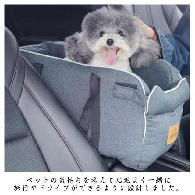 | ペットと車でドライブが楽しめるペット用のドライブボックス; 運転席と助手席の間にあるセンターコンソール上に設置するだけ; 固定用ベルト付きで更に安定したドライブペットキャリー; ペットの気持ちを考えて心地よく一緒に旅行やドライブができるように設計しました。 後部座席ではなく、隣にいるので愛犬愛猫と距離が近く同じ景色が見れます。 クッションもソフトで快適で、 マジックテープを外して、ペットのあご置きにも! 安全フック付きなので、ペットの落下を抑制。 犬・猫と楽しく車でお出掛けできるペットグッズ用のペット用品、ドライブグッズとしておすすめします。 | |
