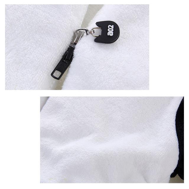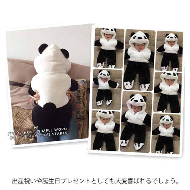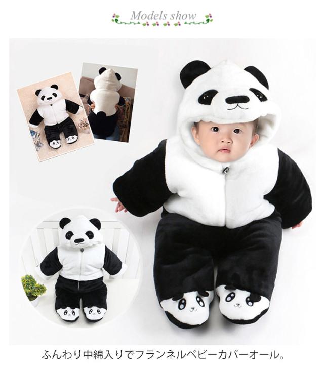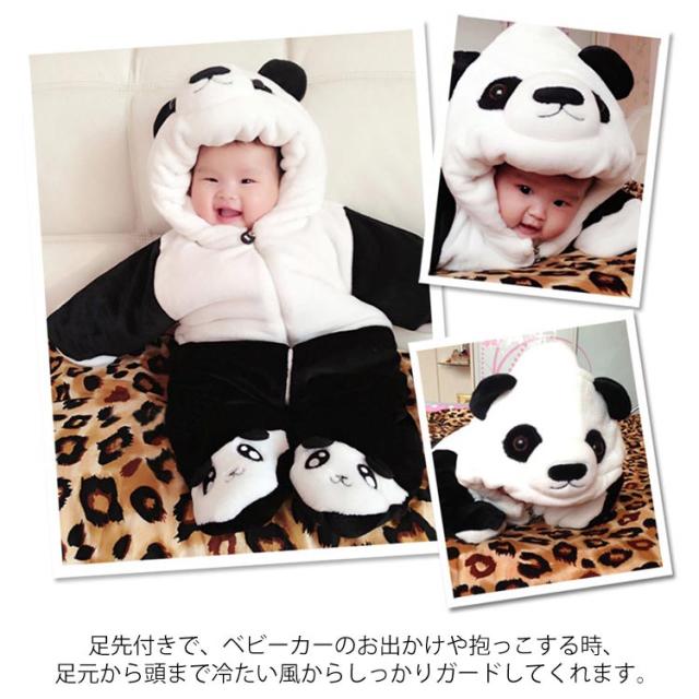 | ふんわり中綿入りでフランネルベビーカバーオール。 着るだけで可愛いパンダに変身♪ 普段着はもちろん、ハロウィンなどの仮装や記念写真撮影など様々なシーンで大活躍。 足先付きで、ベビーカーのお出かけや抱っこする時、足元から頭まで冷たい風からしっかりガードしてくれます。 出産祝いや誕生日プレゼントとしても大変喜ばれるでしょう。 | |
