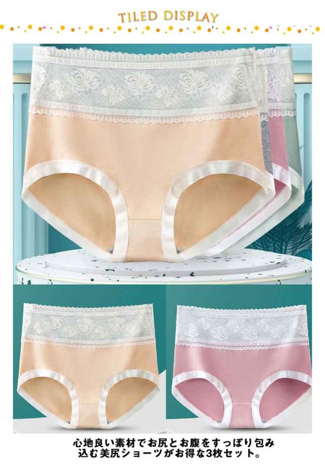 暖かい レースショーツ 綿 花柄レース 女性下着 レディース 下着 ショーツ スタンダードショーツ 股上深め インナー ハイウエスト オシャレ 婦人下着 締め付けない 3枚セット ストレッチ 伸縮性 通気性 きれいめ 温かい 無地 美尻