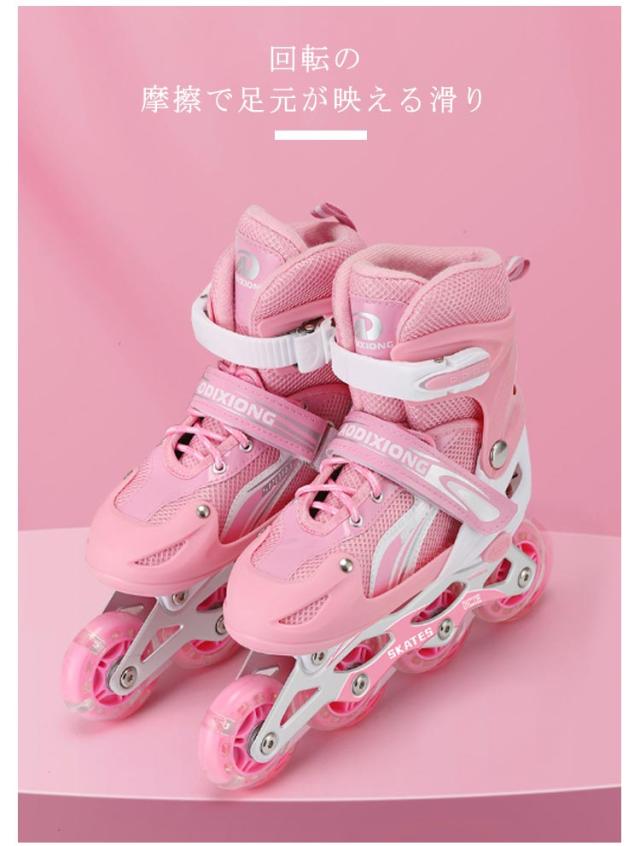 女の子 インラインスケート キッズ フィギュアスケート インラインシューズ ローラースケート 子供 ジュニア 大人 男の子 サイズ調整可能 子供用から大人まで 全ウィールが光る 光る輪 インラインスケート 誕生日 プレゼント