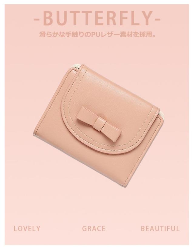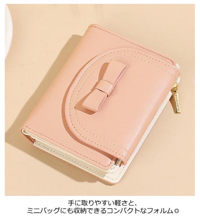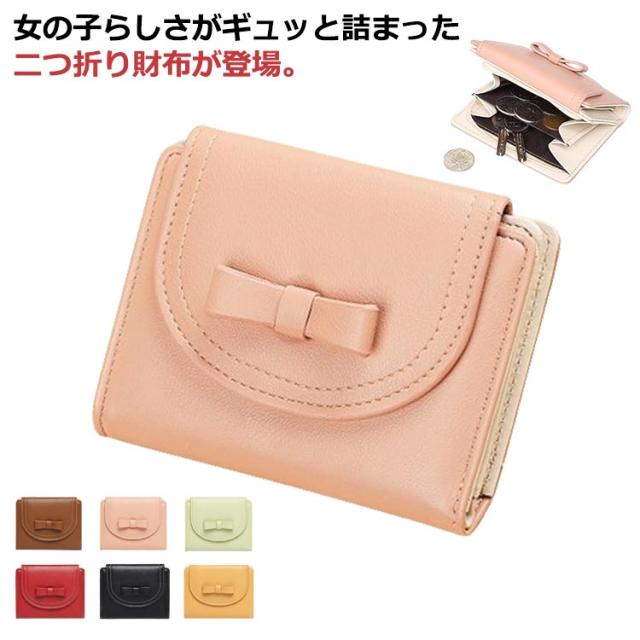 ミニウォレット セカンド財布 二つ折り財布 財布 レディース ミニ財布 サイフ 小銭入れ カード さいふ 小さい ミニ ウォレット 送料無料 送料無料 カード入れ スリム 薄い PUレザー フェイクレザー コンパクト リボン
