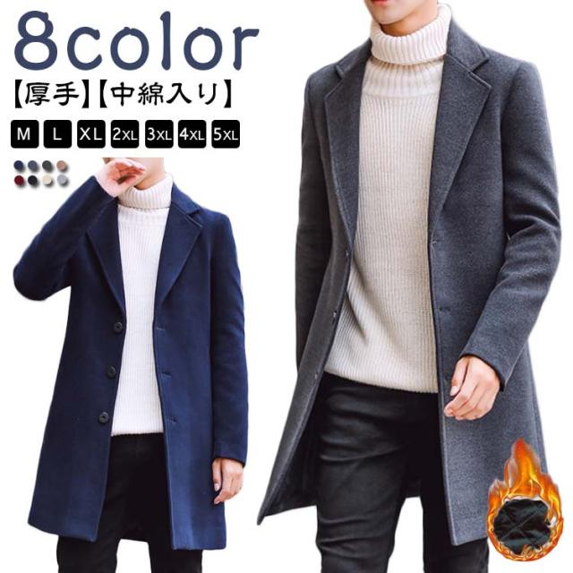 | 【8color】【中綿入り】【厚手】【M-5XL】 流行に左右されない上品で落ち着いた雰囲気を持つチェスターコート。 中綿のついた暖かい生地はしっかり防寒対策もできる素材感。 きれいめコーデはもちろん、カジュアルコーデも品良くまとめてくれる万能アウターです。 着回しやすさも抜群で、さっと羽織るだけで、さわやかな印象に仕上げてくれる1着です。 マフラーやハイネックのインナーと合わせればさらに「イイ男感」の格上げ間違いなし! | |