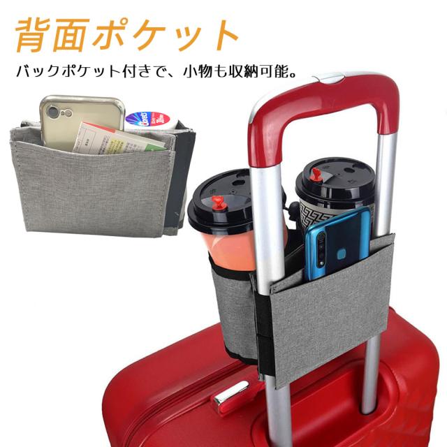 スーツケース 小物入れ ホルダー ポケット付き スーツケース用 ボトルホルダー 出張用 水筒入れ 水筒 ドリンクホルダー 飲み物ホルダー 旅行 機内持ち込み スーツケース キャリーケース 旅行ケース カップホルダー 簡単装着