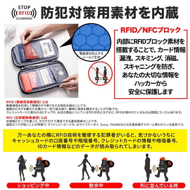 多層構造により電磁波をカットして、スキミングを徹底防止!安全に旅が楽しめます