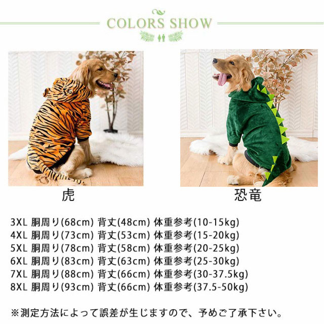 | 毛まみれを避けるのために部屋着として使え、着やすいし、脱ぐのも簡単にできます。 2024年は辰年です!年末、年始はドラゴンになって注目を浴びましょう! ふわふわで可愛い虎・ドラゴンのコスチュームです。 厚手生地で、着心地も良く、着せやすいです。 弾力性、触り良く、お散歩、お出かけなどに大活躍します。 | |
