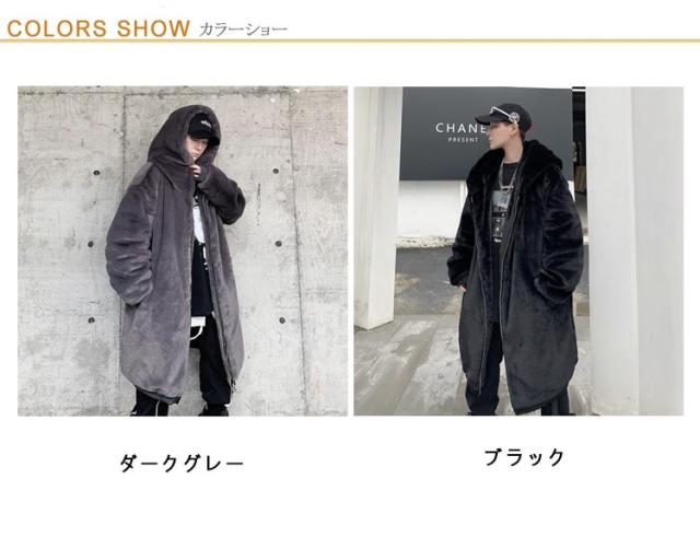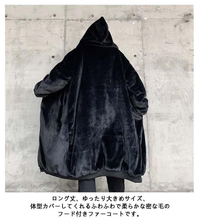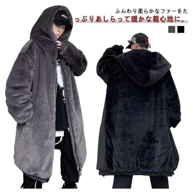 ボアコート メンズ ファー ロングコート フェイクファー コート フード付き 毛皮コート ファーコート ゆったり 大きいサイズ 韓国ファッション ストリート 暖かい 厚手 防寒 あったか 秋冬 ボアジャケット もこもこ
