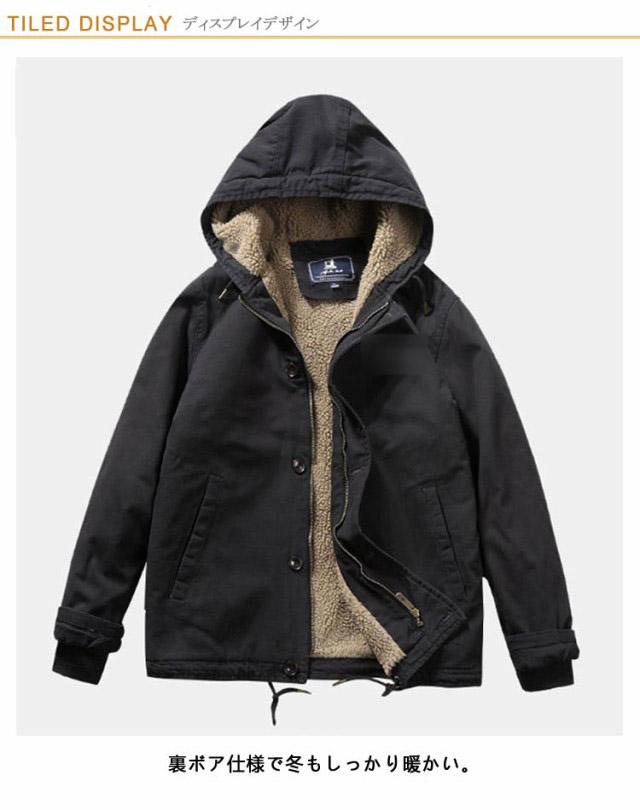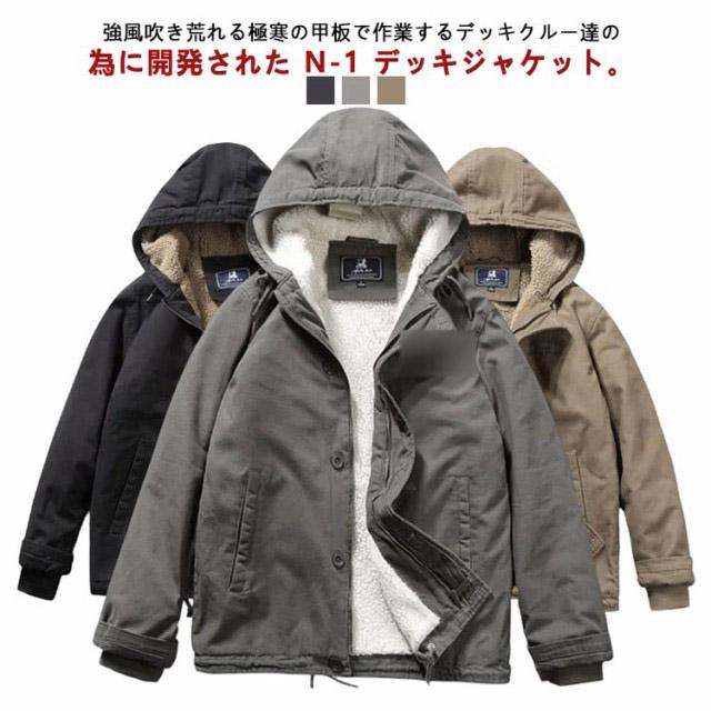 ミリタリージャケット メンズ アウター フード付き N-1 デッキジャケット 裏起毛 ボアジャケット 冬服 おしゃれ かっこいい ボアブルゾン 厚手 作業服 アウトドア あったか 暖かい 20代 30代 40代
