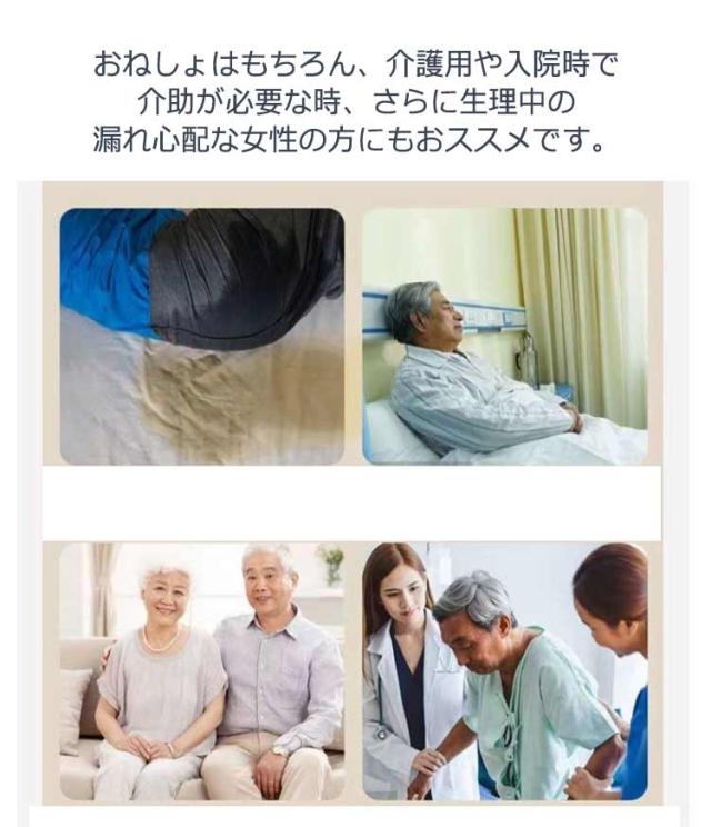 | お得な2枚セット!大人用のおねしょズボン。 ウエスト部分は紐で調整でき、ストレスフリー。 おねしょはもちろん、介護用や入院時で介助が必要な時、さらに生理中の漏れ心配な女性の方にもおススメです。 3層保護で漏れにくい!外側に肌さわりのいい綿素材を使用、中層にTPU防水フィルムが内蔵、直接肌に触るの側には柔らかくもふもふ触感の生地を採用します。 L-2XL!体型問わず、心地よく利用できます! | |