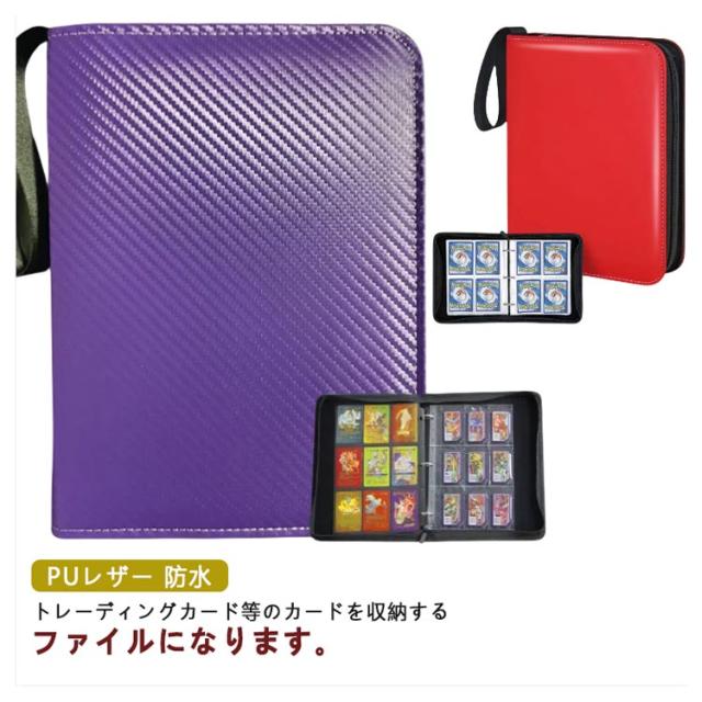 | トレーディングカード等のカードを収納するファイルになります。 400枚、900枚の大容量のカードを収納可能です。 ポケモンや遊戯王のトレカからアイドル、韓流のカードを保管するのにぴったりです。 素材は上質なPUレザーを用いており撥水機能があります。 ジッパーでの開閉式で水や埃の侵入を防ぎ、カードの落下の心配もありません。 ご自宅でのカードの保管やカバンに収納しての持ち運びに適しています。 | |