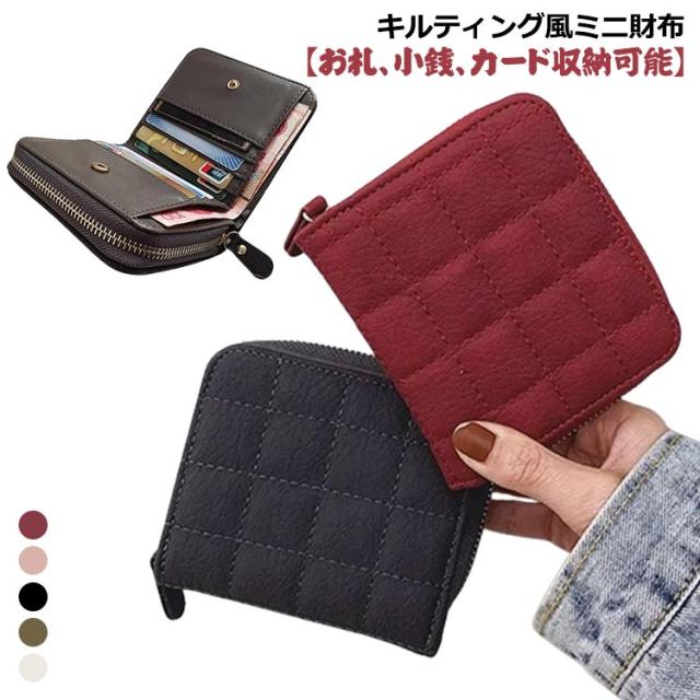 ミニ財布 レディース コインケース カードケース レディース 財布 使いやすい ミニウォレット コンパクト 小さい財布 二つ折り お札折らない カード入れ 小銭入れ 札入れ かわいい キルティング風 キルト風 フェイクレザー おしゃれ 大人 学生 プチプラ 【送料無料】