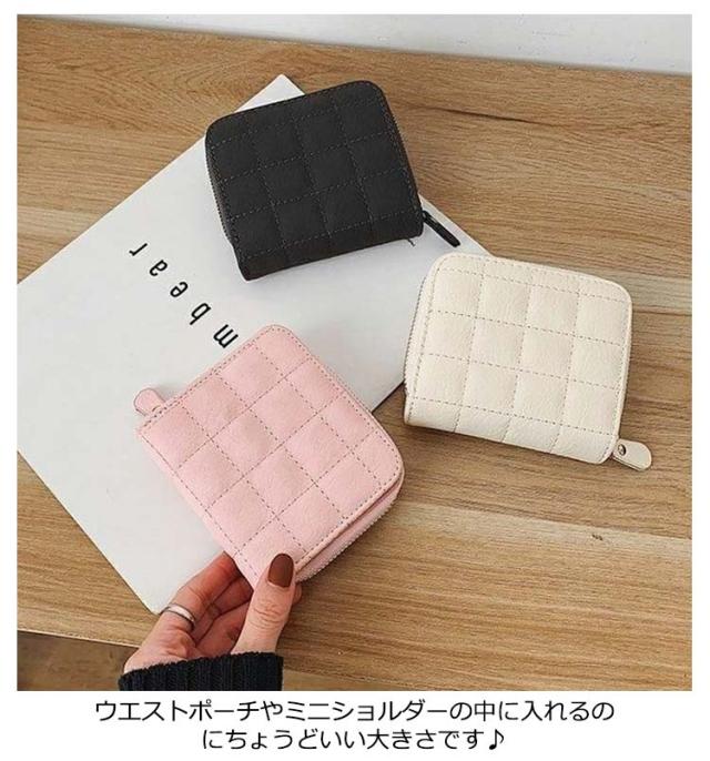 | キルティング風ミニ財布。【お札、小銭、カード収納可能】 手のひらにすっぽり収まるコンパクトなデザインで、流行りの小さいバッグにもぴったり♪ コンパクトなサイズながらお札入れ、小銭入れ、カード入れがそれぞれ収納できちゃいます◎ ウエストポーチやミニショルダーの中に入れるのにちょうどいい大きさです♪ 大きく開くファスナー口がコインを取り出しやすく使い心地◎ | |