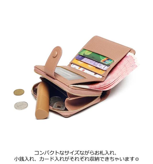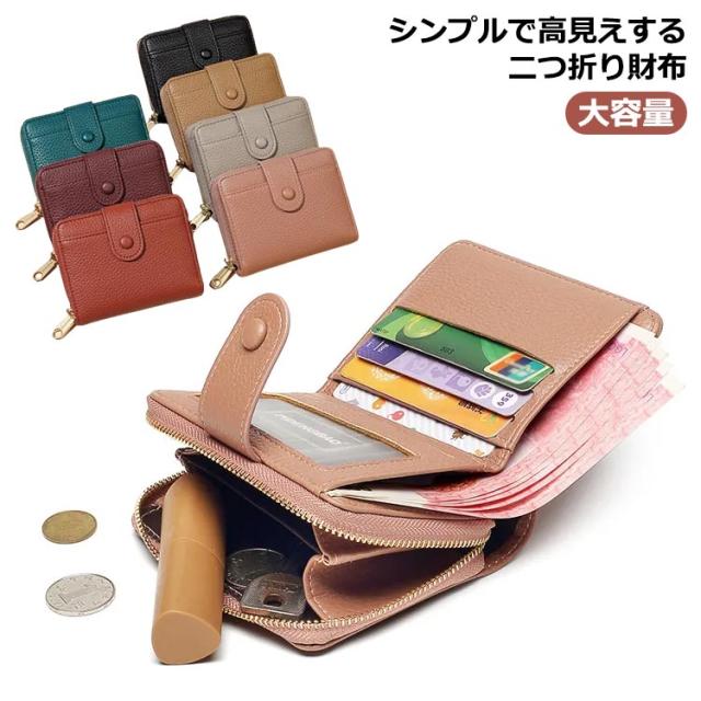 ミニ財布 レディース 二つ折り 財布 コンパクト カードケース 小銭入れ ミニウォレット スリム 薄い 小さい財布 お札折らない 大容量 使いやすい コインケース カード入れ 定期入れ ファスナー フェイクレザー 無地 シンプル おしゃれ 大人 可愛い 【送無】