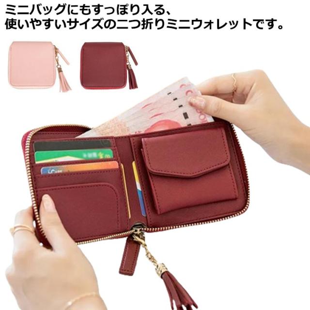財布 二つ折り レディース ミニ財布 ファスナー 小さい財布 カードケース 小銭入れ ミニウォレット スクエア型 コンパクト 大容量 スリム 薄い お札折らない 使いやすい ボックス型 コインケース カード入れ 定期入れ フェイクレザー おしゃれ 【送無】