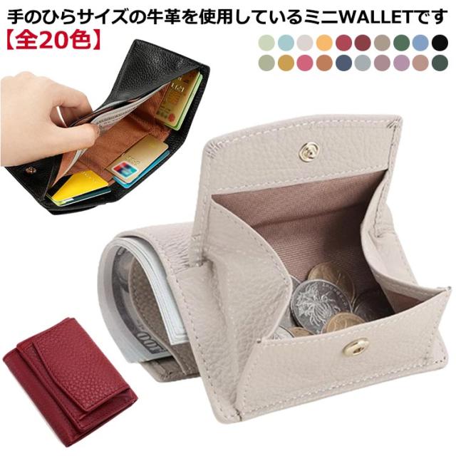 本革 ミニ財布 レディース 三つ折り 財布 小さい財布 カード入れ 小銭入れ ミニウォレット ボタン型 コンパクト スリム 薄型 お札折らない 使いやすい カードケース コインケース ボックス型 三つ折り財布 レザー 牛革 高級感 おしゃれ 大人可愛い 【送無】