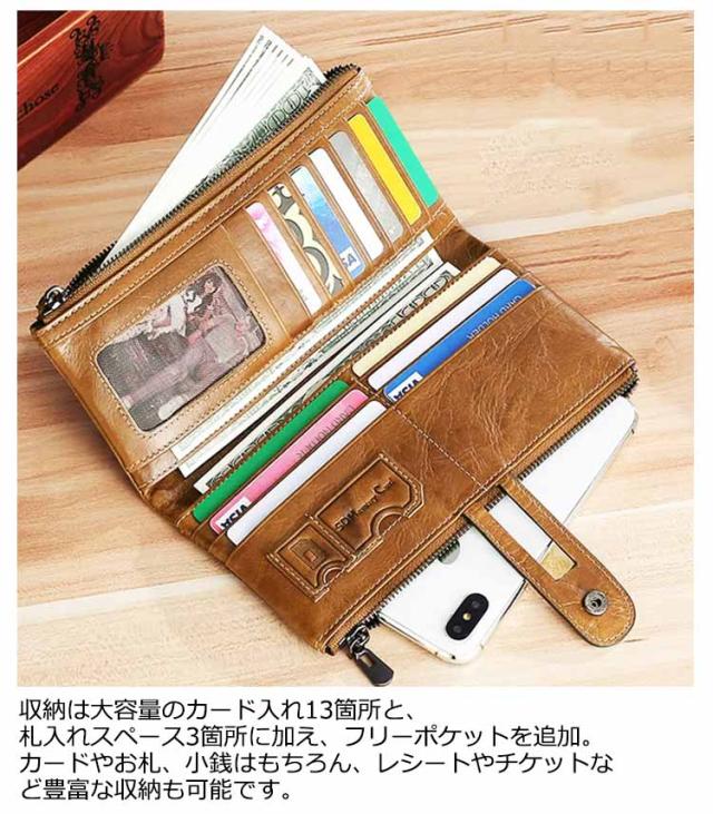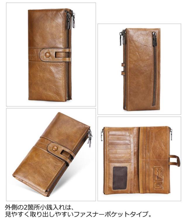 財布 メンズ 長財布 本革 大容量 薄い ロングウォレット 小銭入れ カード入れ カードたくさん入る スキミング防止 使いやすい フェイクレザー ダブルファスナー ボタン留め ウォレット 男性 40代 50代 60代 カードケース コインケース レトロ ビジネス 【送無】