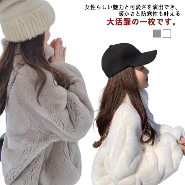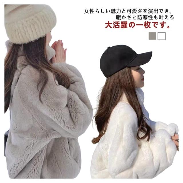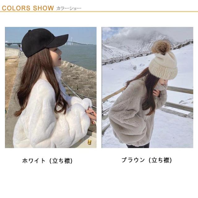 ジャケット レディース 秋冬 暖かい 立ち襟 アウター もこもこ ふわふわ カジュアル 無地 防寒服 ブルゾン トップス 長袖 防寒コート フェイクファー スタンドカラー おしゃれ 厚手 レディースファッション アウトドア ホワイト ブラウン 送料無料