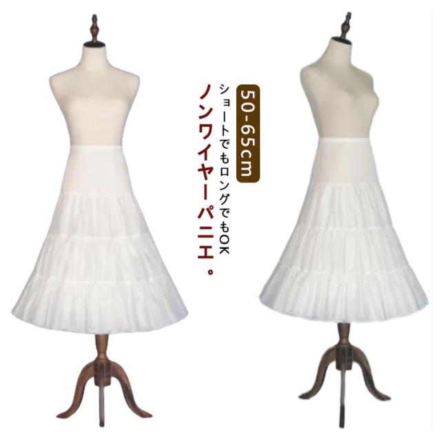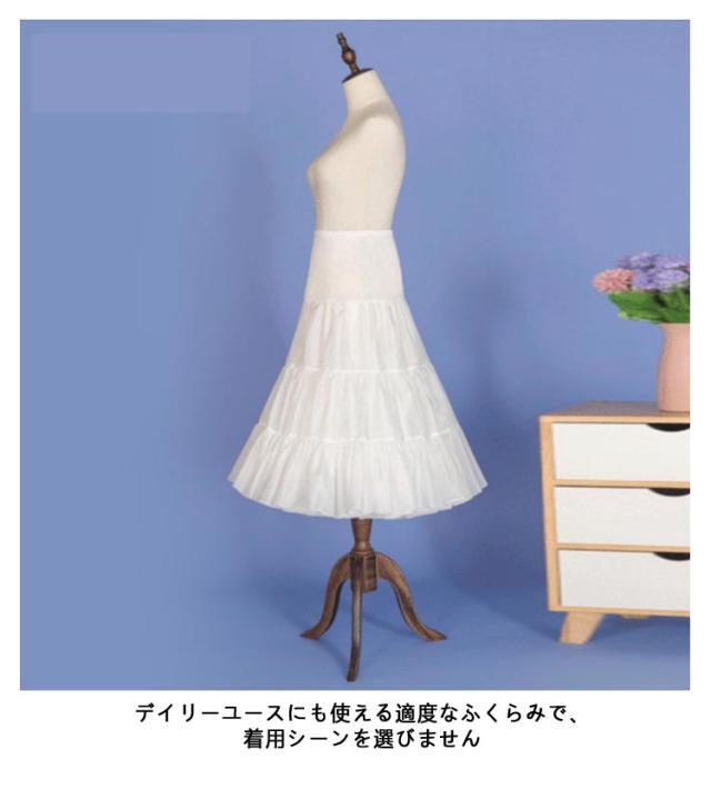 ミディアム ホワイト 50-65cm 長さ調節可 ワイヤー無 柔らかい 3段 バレエダンス ロングパニエ パニエ 日常 ペチコート 日常 白 レディース 送料無料 フリルいっぱい インナー コスプレ バレエ ブライダル ロリータ