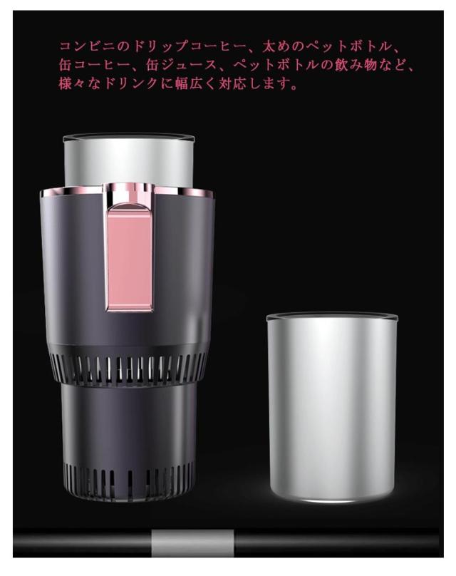 | ボタン操作一つで、保冷・保温のモード切替ができます。 保冷モード時は青色のLED点灯、保温モード時は赤色のLED点灯で、一目で動作状態が確認できます。 コンビニのドリップコーヒー、太めのペットボトル、缶コーヒー、缶ジュース、ペットボトルの飲み物など、様々なドリンクに幅広く対応します。 車のドリンクホルダーに設置可能で、保温と保冷の2つの機能を搭載した、車載ドリンクホルダーです。 車のドリンクホルダーに置くだけで簡単に設置できます。 保冷モード時は最大-3℃、保温モード時は最大65℃まで底面プレート温度が変化し、ドリンクの飲み頃温度をキープすることができます。 | |