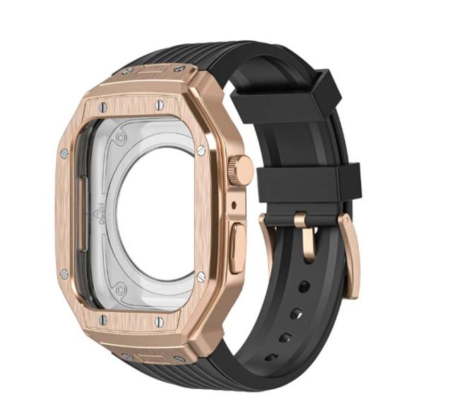 | 高級感とスタイリッシュさを演出するApple Watchケースベルトです。 ケースに、上質な合金素材を使用。 ベルトは水に強いラバータイプです。汗や水濡れの影響を軽減しお手入れが簡単。 付属のラバーケースをアップルウォッチにつけて、ケースにはめた後、ネジで留めるだけの簡単装着です。 ※本製品のケースとストラップは一体型仕様です。 | |