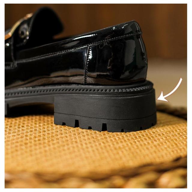 | 幅広ローファー 上品に高見えするエナメル調でボリューミーなファーがリッチな印象 柔らかく通気性のあるインソール 太くて安定感のあるヒール | |