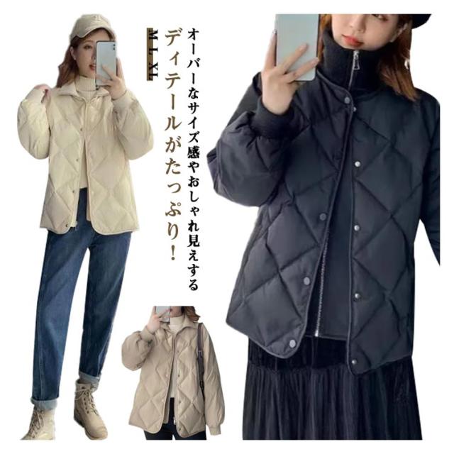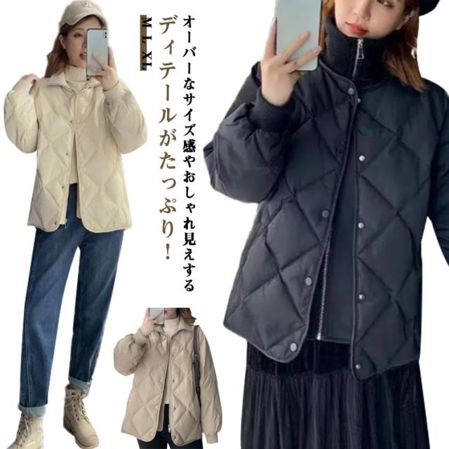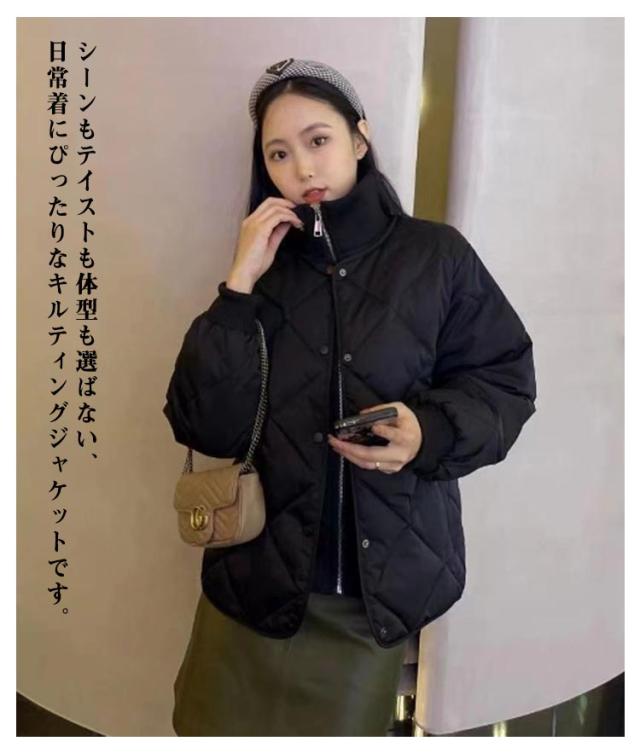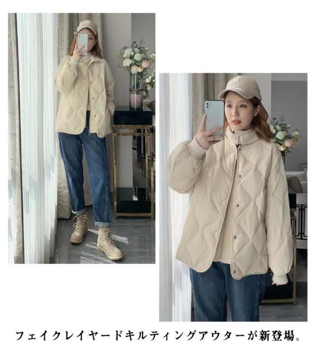 秋 羽織 レディース コート フェイクレイヤード キルティング 上着 ブルゾン 重ね着風 ハイネック キルティング キルト アウター ゆったり 中綿コート 防寒コート フェイクダウン ショートコート 中綿 ドッキング