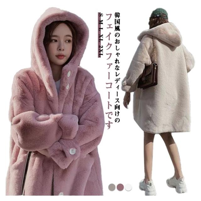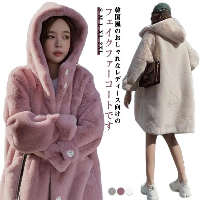 アウター ボリューム もふもふ フード付き ボリューム モコモココート コート ファー ロング丈 もこもこ 暖かい ロングコート ボアパーカー ボアコート 毛皮コート かわいい フェイクファー ベージュ ボリュームファーコート