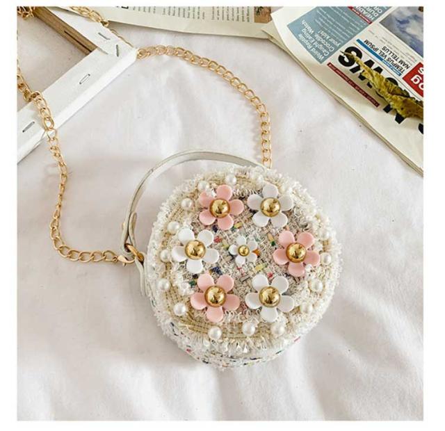 大人っぽい ポシェット ミニバッグ クラッチバッグ 子供用 丸い プリンセス ミニショルダー お呼ばれ 女の子 可愛い お花 パール フォーマル ショルダーバック 子供用 結婚式 小学生 3歳 4歳 5歳 6歳 キッズ