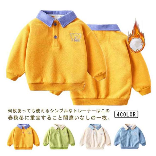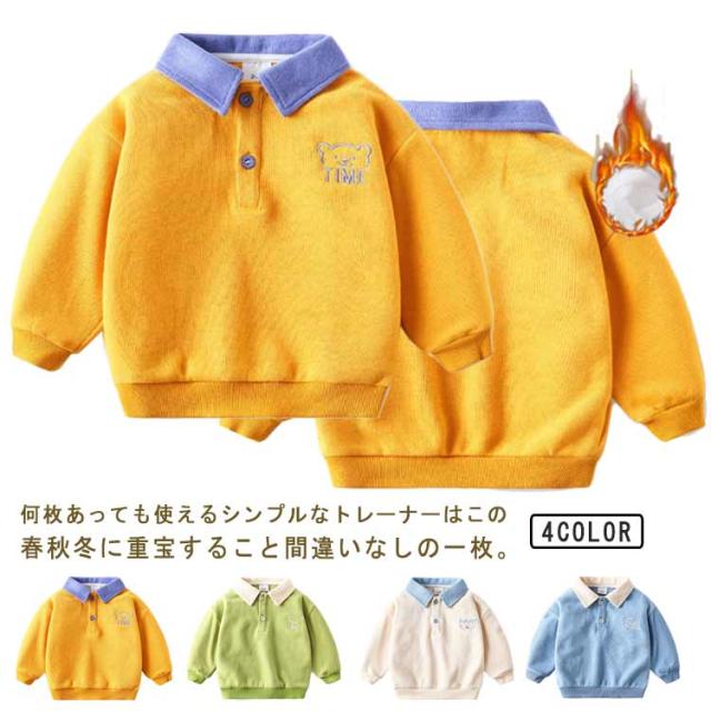 ポロシャツ ジュニア 裏起毛 トレーナー 無地 100cm キッズ 無地 キッズ ロンT 秋冬 レイヤード 110cm Tシャツ 130cm クルーネック 150cm 長袖 スウェット 女の子 防寒 厚手 男の子 120cm 140cm おしゃれ かわいい 男女兼用 韓国 子供服 春秋 90cm