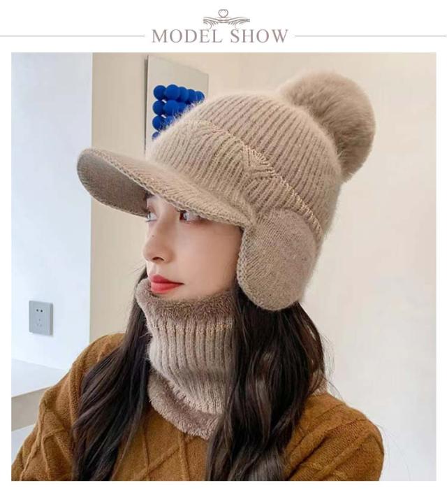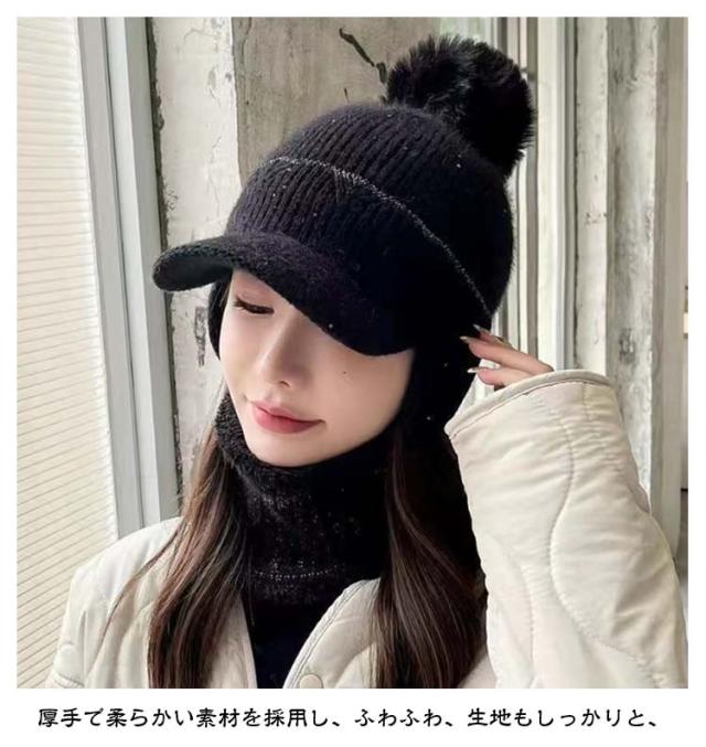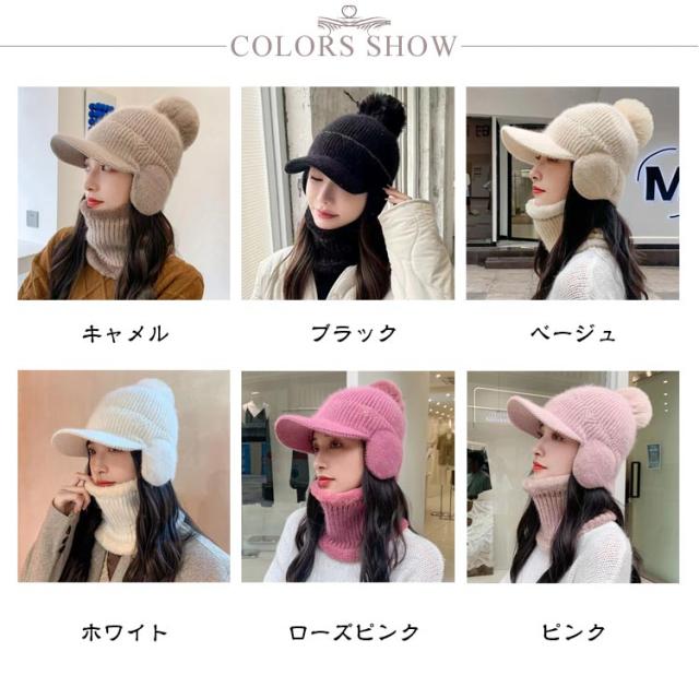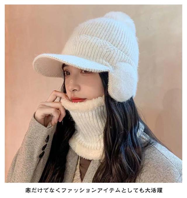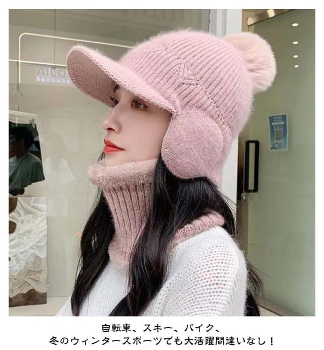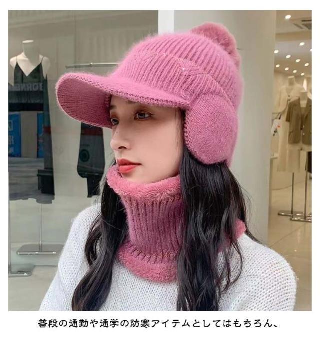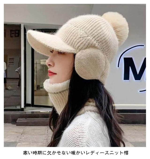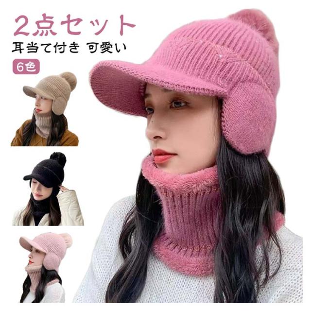 秋冬 ボンボン 耳あて付き 耳当て付き 耳当てつき ニット帽 耳あて つば付き ニット帽 レディース 耳あて ネックウォーマー 裏起毛 暖かいニット帽 帽子 ニットキャップ 2点セット あったか 防寒 ニット帽 可愛い おしゃれ 秋 冬 帽子 リブ編み ポンポン付き 大きめ 暖かい
