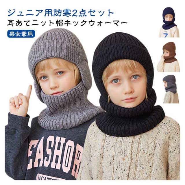 ジュニア 子ども 4-10歳 耳当て 帽子 男の子 秋冬 裏起毛 キッズ 【2点セット】ニット帽 あったか 女の子 子ども 冬 防風 耳あて付き 保温 子供 厚手 暖かい 可愛い かわいい おしゃれ 寒さ対策 耳あて付き帽子 帽子 小学生 通学 スノーボード ネックウォーマー