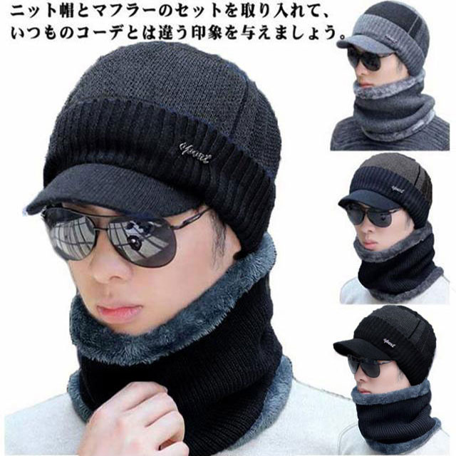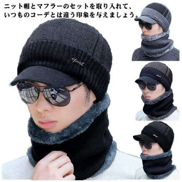 | これからの時期のコーデは、アウターの着回しなんかで単調になりがちなので、 ニット帽とマフラーのセットを取り入れて、いつものコーデとは違う印象を与えましょう。 帽子はつば付きで、寒い冬に防風防寒力UPされるとともに、つばが顔のラインを隠し小顔効果もUPされます。 超厚の毛糸編み構造であなたを温かく包み込み、柔らか裏起毛素材の裏地は心地よい気持ちに! ニット帽はコーディネートしやすいシンプルなデザインで、どんなスタイルにも合わせることが出来る。 | |