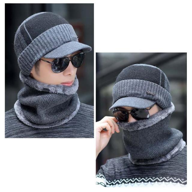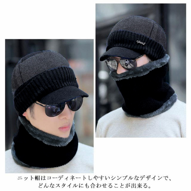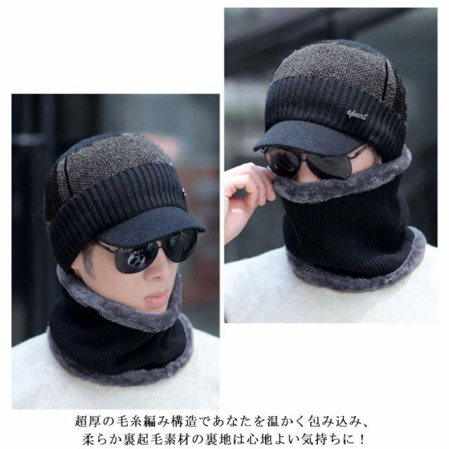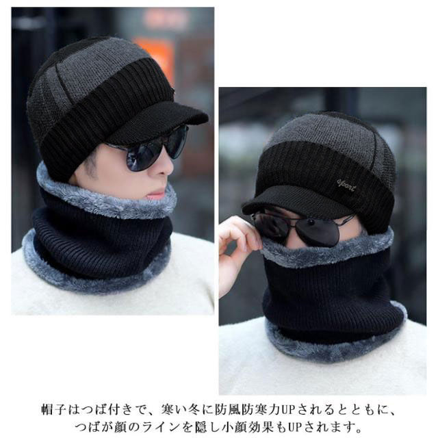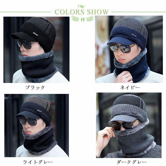 2点セット ニット帽 キャンプ メンズ 冬帽子 ゴルフ マスク 秋 冬 スノーボード 帽子 裏起毛 ニット帽 厚手 裏ボア スヌード おしゃれ つば付き キャップ 防寒グッズ ネックウォーマー 防寒対策 ふわふわ 暖かい スキー 無地