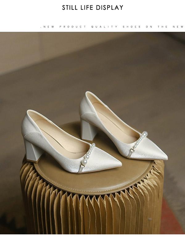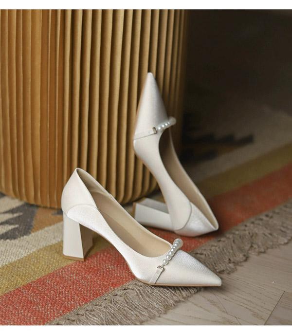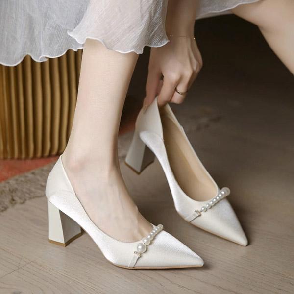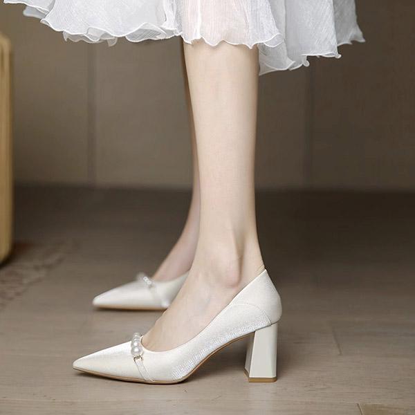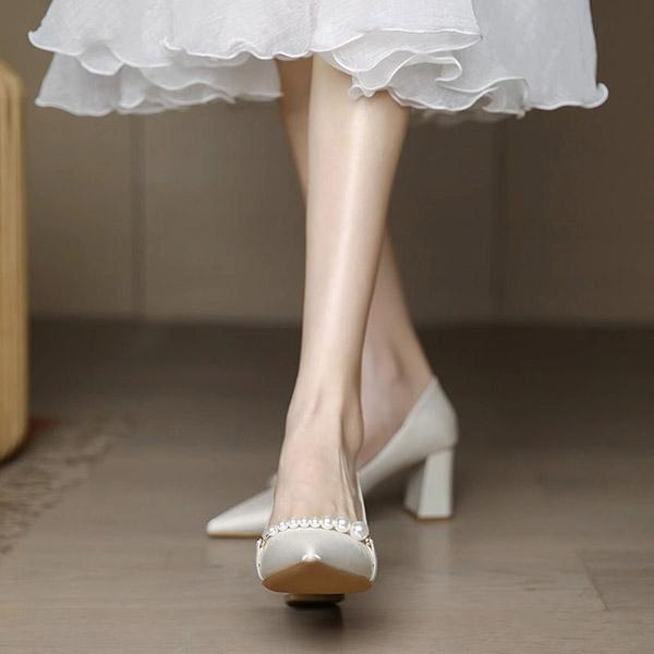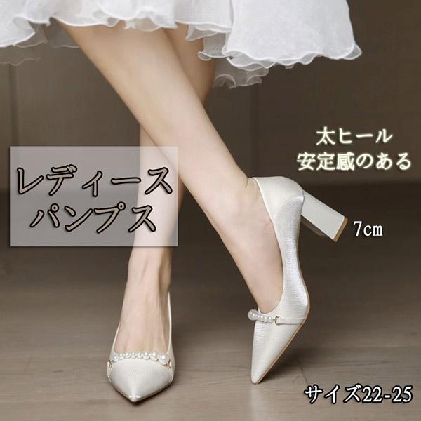 豪華なパンプス レディースシューズ ウエディングシューズ 美脚 背伸び 7cm太ヒール 疲れにくい 安定感 おしゃれ 女性用 フォーマル ポインテッドトゥ ベージュ 結婚式 二次会 発表会 演奏会 演出 イベント
