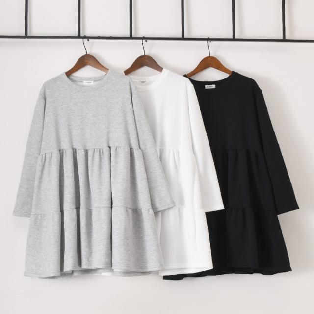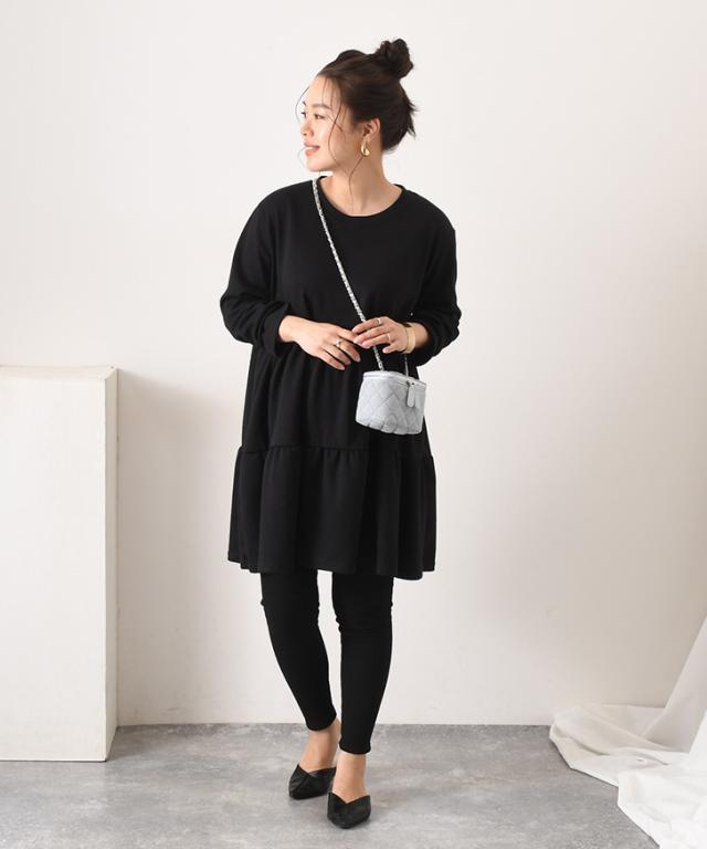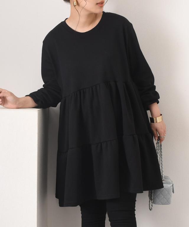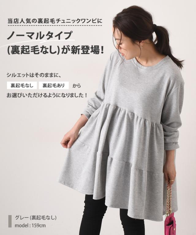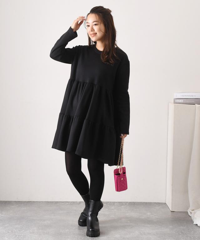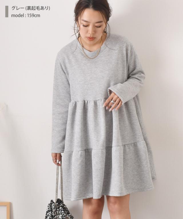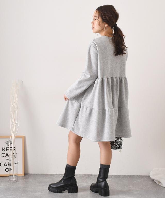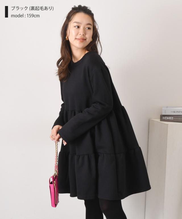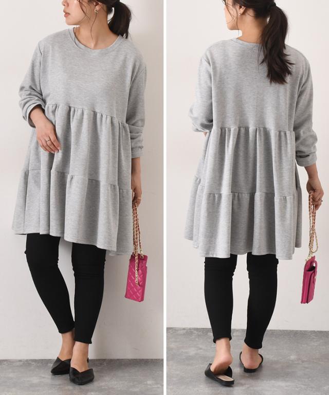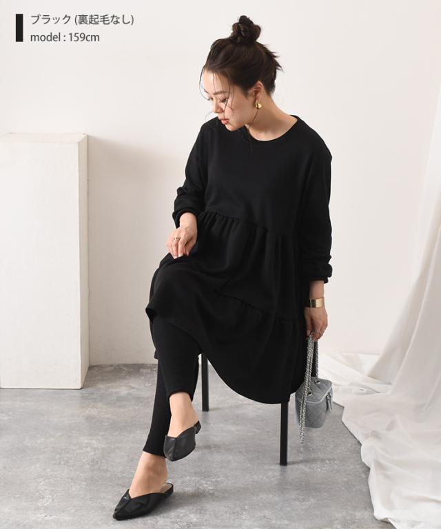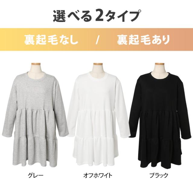 新作 チュニックワンピース レディース 春 秋 冬 長袖 ティアード スウェット 裏起毛 トップス スエット ゆったり リラックス 体型カバー