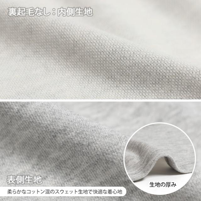 ■生地感:【裏起毛なし】柔らかい薄手のスウェット生地 【裏起毛あり】程良い厚みの柔らかいスウェット生地